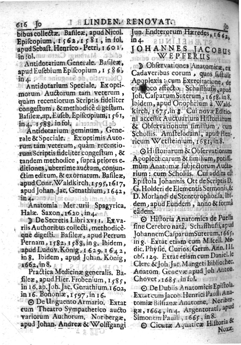 Lindenius renovatus sive Johannis Antonidae Van der Linden De Scriptis Medicis libri duo
