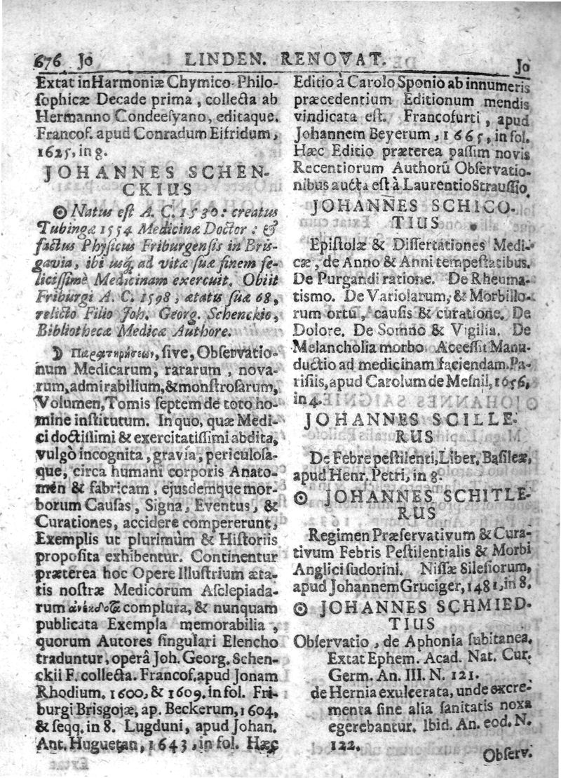 Lindenius renovatus sive Johannis Antonidae Van der Linden De Scriptis Medicis libri duo