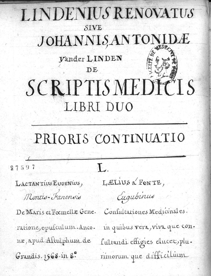 Lindenius renovatus sive Johannis Antonidae Van der Linden De Scriptis Medicis libri duo