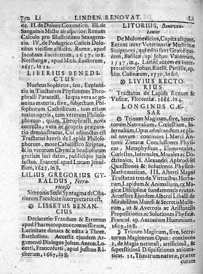 Lindenius renovatus sive Johannis Antonidae Van der Linden De Scriptis Medicis libri duo