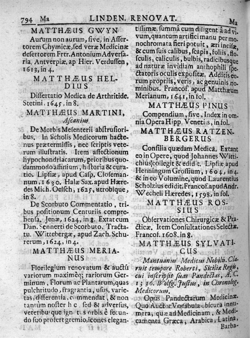 Lindenius renovatus sive Johannis Antonidae Van der Linden De Scriptis Medicis libri duo