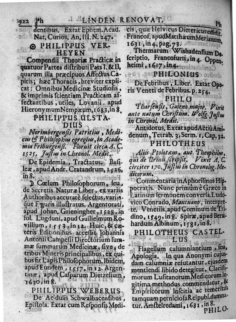 Lindenius renovatus sive Johannis Antonidae Van der Linden De Scriptis Medicis libri duo