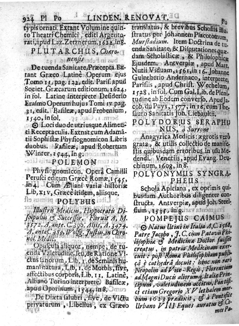 Lindenius renovatus sive Johannis Antonidae Van der Linden De Scriptis Medicis libri duo