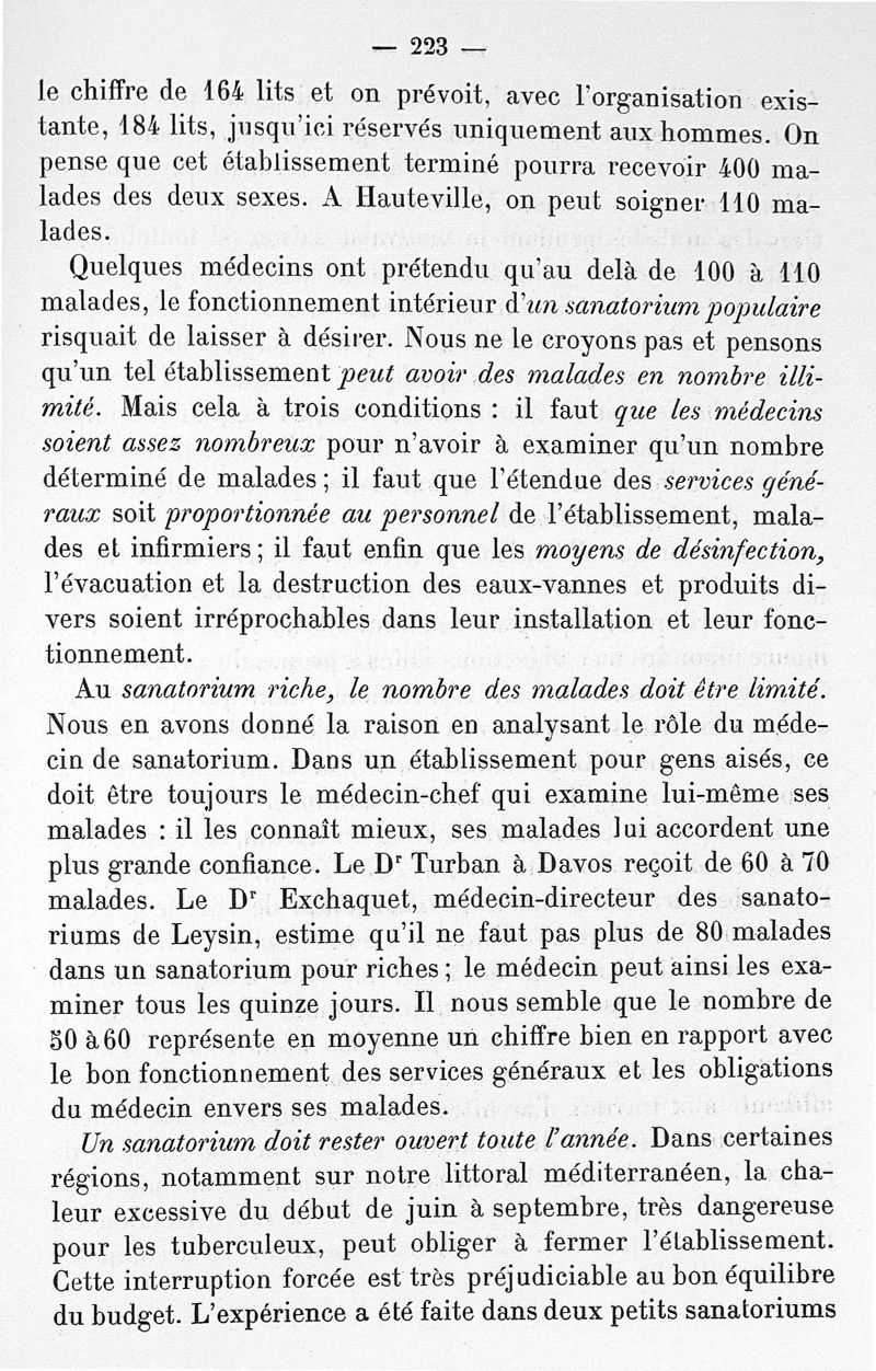 Lutte contre la tuberculose. Le sanatorium , sa possibilité, son organisation
