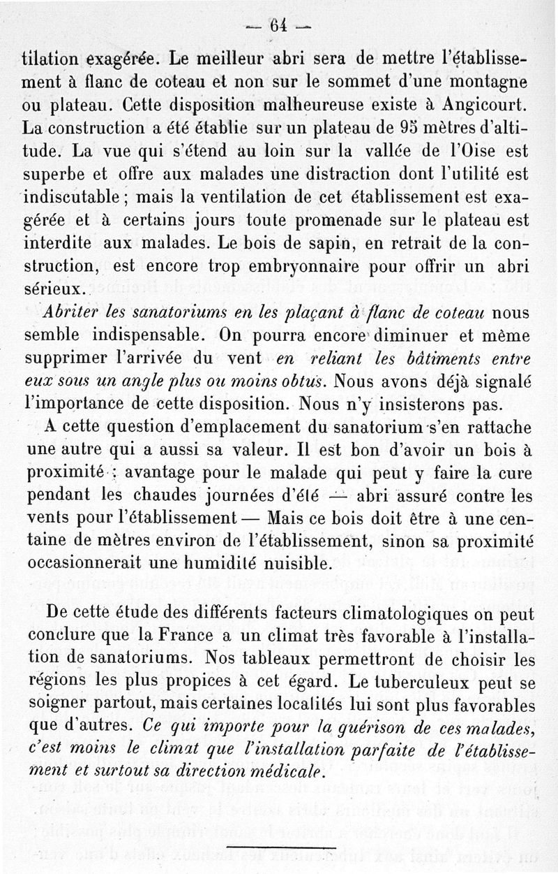 Lutte contre la tuberculose. Le sanatorium , sa possibilité, son organisation