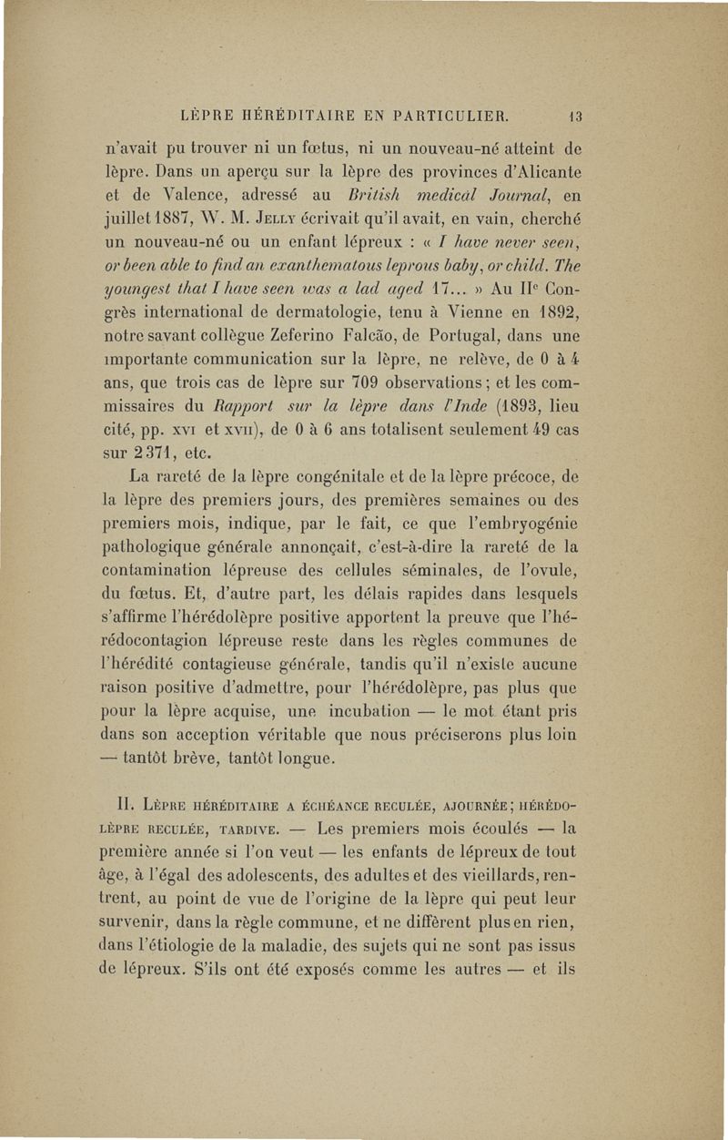 Sur la Lèpre, rôle étiologique. I. De l'hérédité. II. De la transmissibilité (nosologie générale, prophylaxie) ,... conférence de Berlin pour la lèpre, octobre 1897