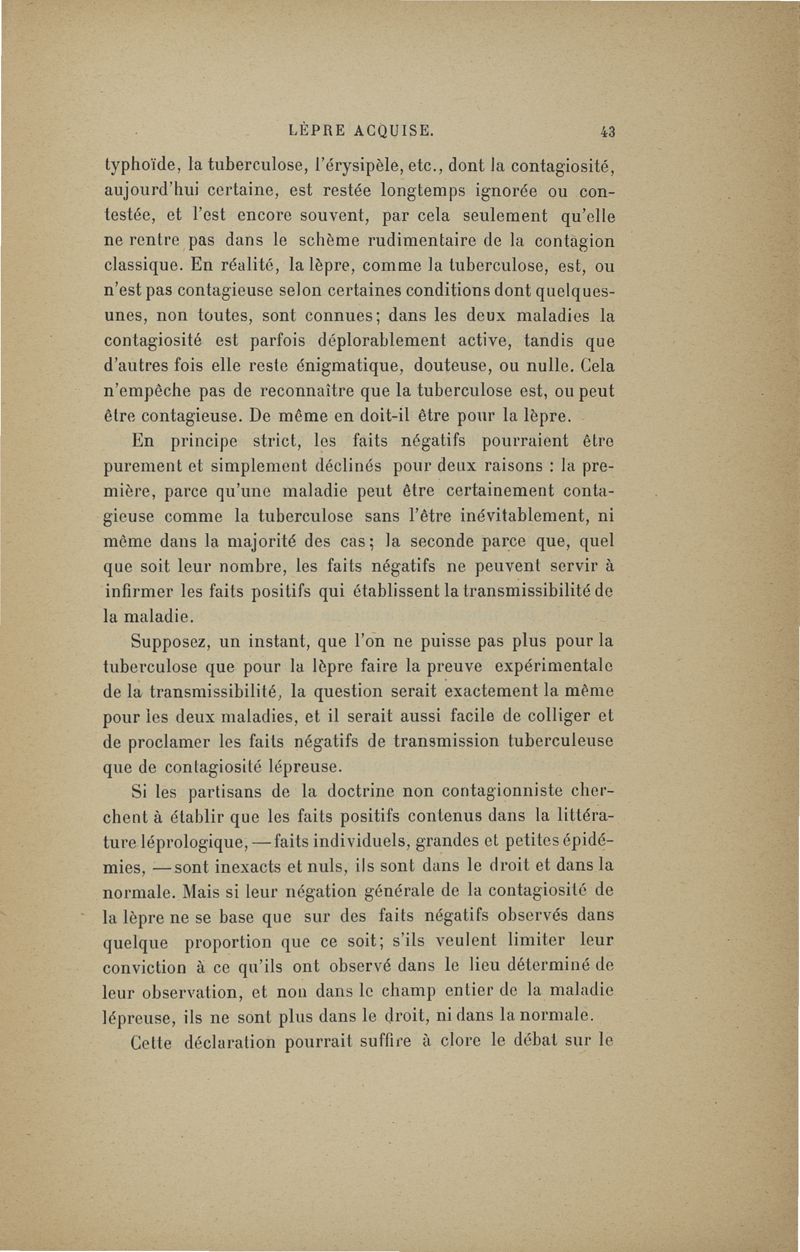Sur la Lèpre, rôle étiologique. I. De l'hérédité. II. De la transmissibilité (nosologie générale, prophylaxie) ,... conférence de Berlin pour la lèpre, octobre 1897
