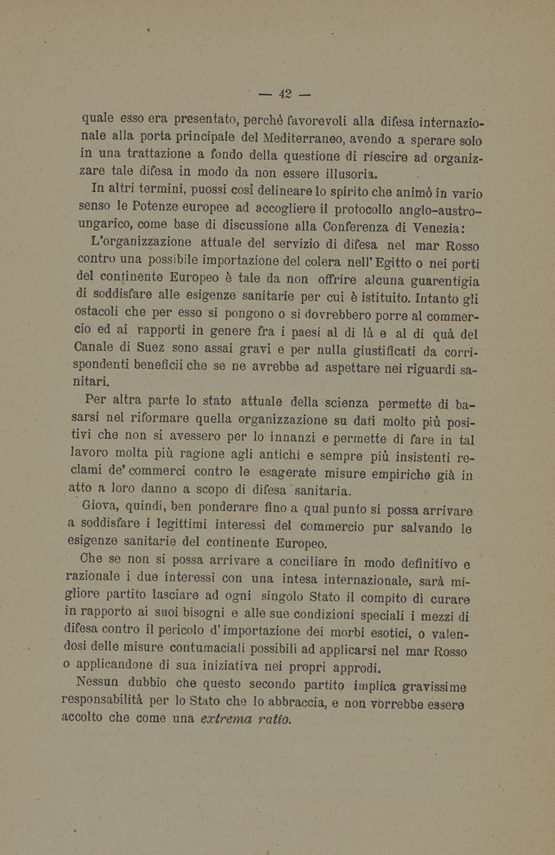 La profilassi europea contro i morbo epidemici esotici e la convenzione della conferenza sanitoria internazionale di Venezia