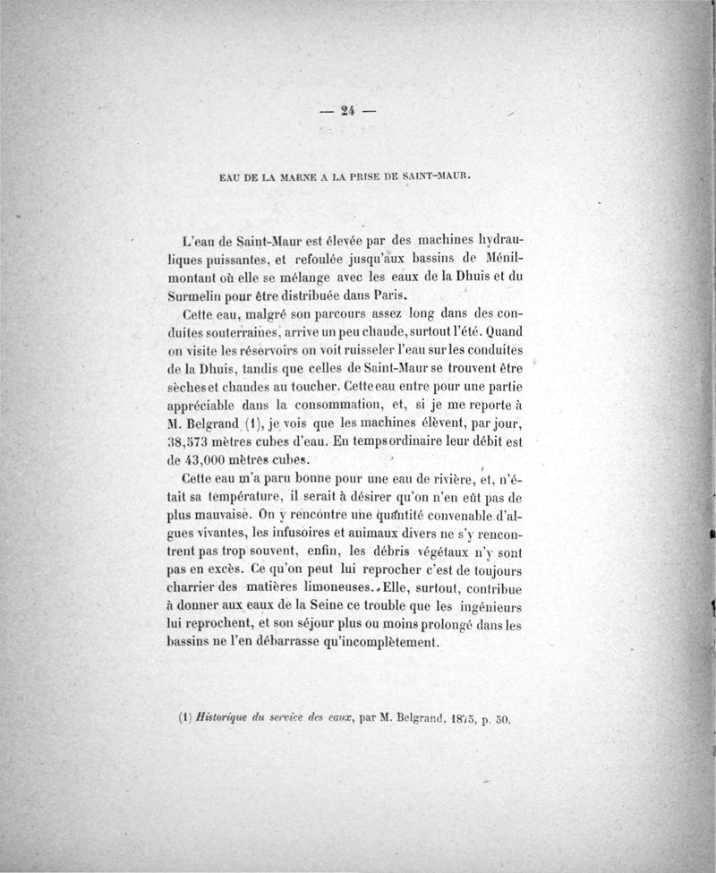 Des Eaux de Paris. Essai d'analyse micrographique comparée . Ses rapports avec l'hygiène et la pathologie