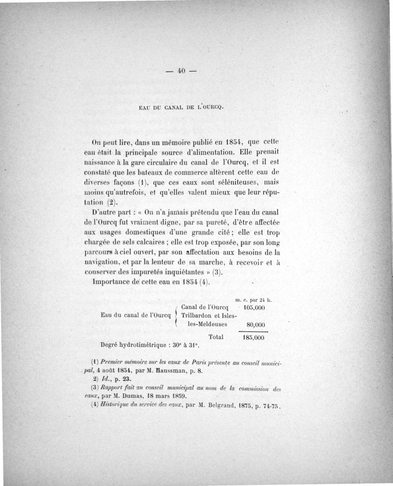 Des Eaux de Paris. Essai d'analyse micrographique comparée . Ses rapports avec l'hygiène et la pathologie