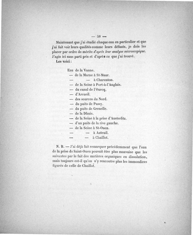 Des Eaux de Paris. Essai d'analyse micrographique comparée . Ses rapports avec l'hygiène et la pathologie