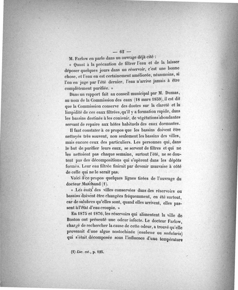 Des Eaux de Paris. Essai d'analyse micrographique comparée . Ses rapports avec l'hygiène et la pathologie