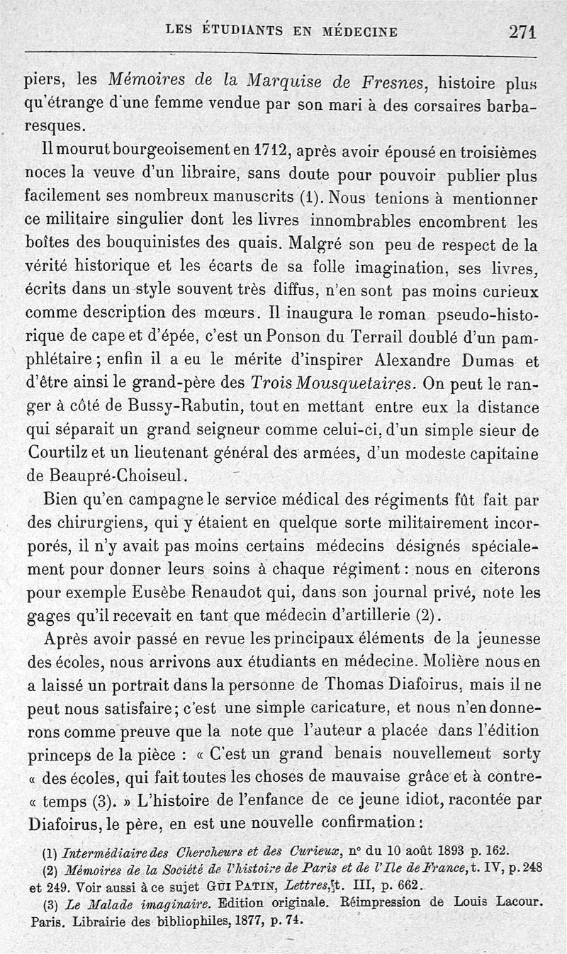 Les étudiants en médecine de Paris sous le grand roi ; essai sur leurs études, leur vie médicale et leur vie privée ainsi que sur la société bourgeoise dont ils faisaient partie