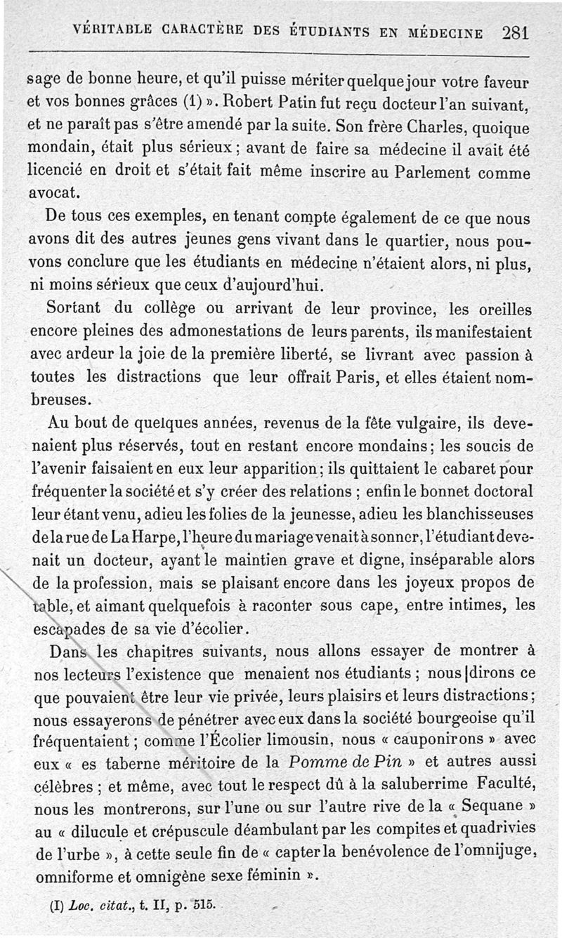 Les étudiants en médecine de Paris sous le grand roi ; essai sur leurs études, leur vie médicale et leur vie privée ainsi que sur la société bourgeoise dont ils faisaient partie