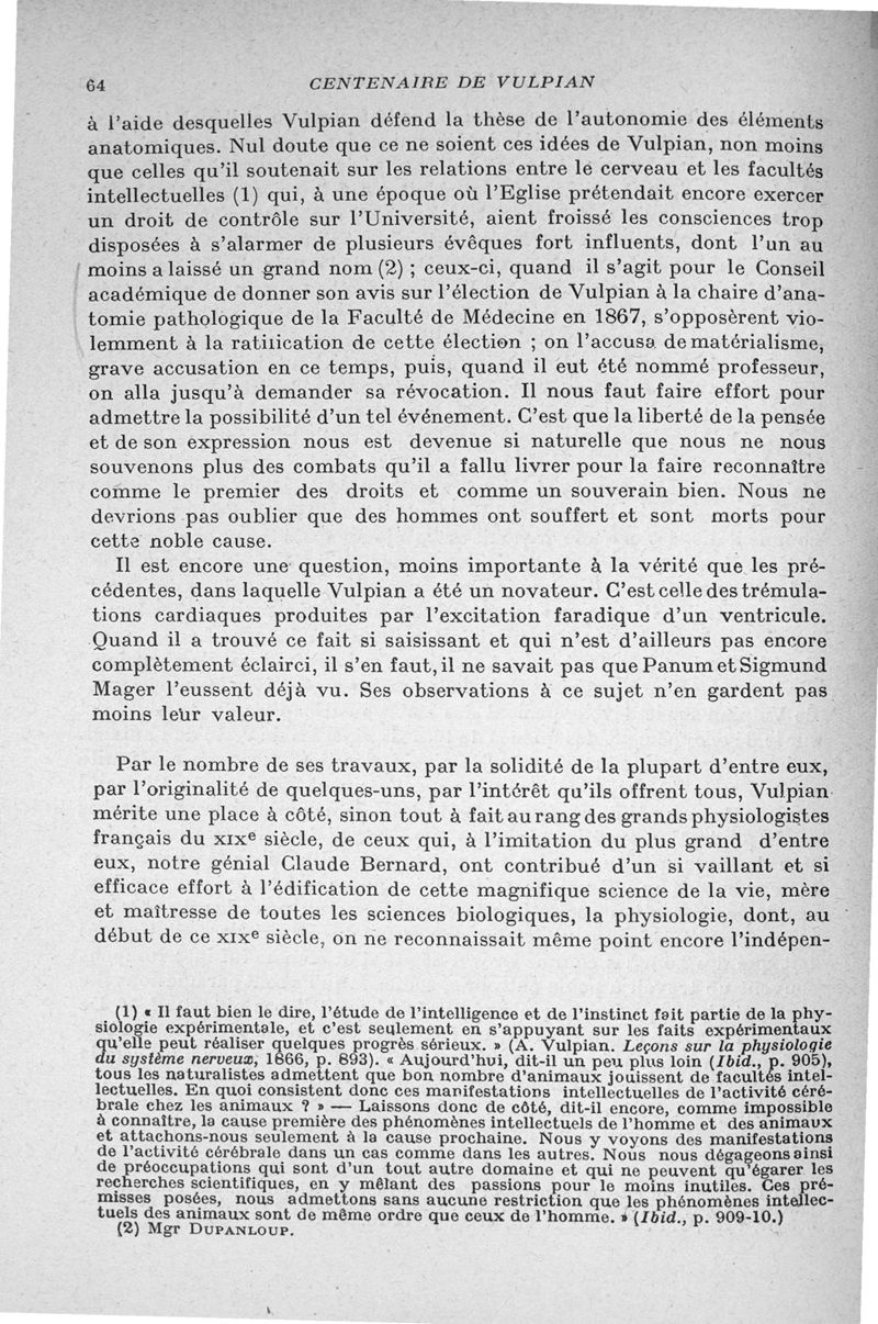 Centenaire de la naissance de Vulpian (1826-1887)