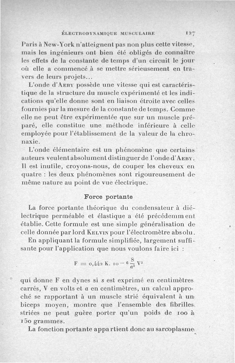 Introduction à la mécanique de la vie. I- Electrodynamique du muscle