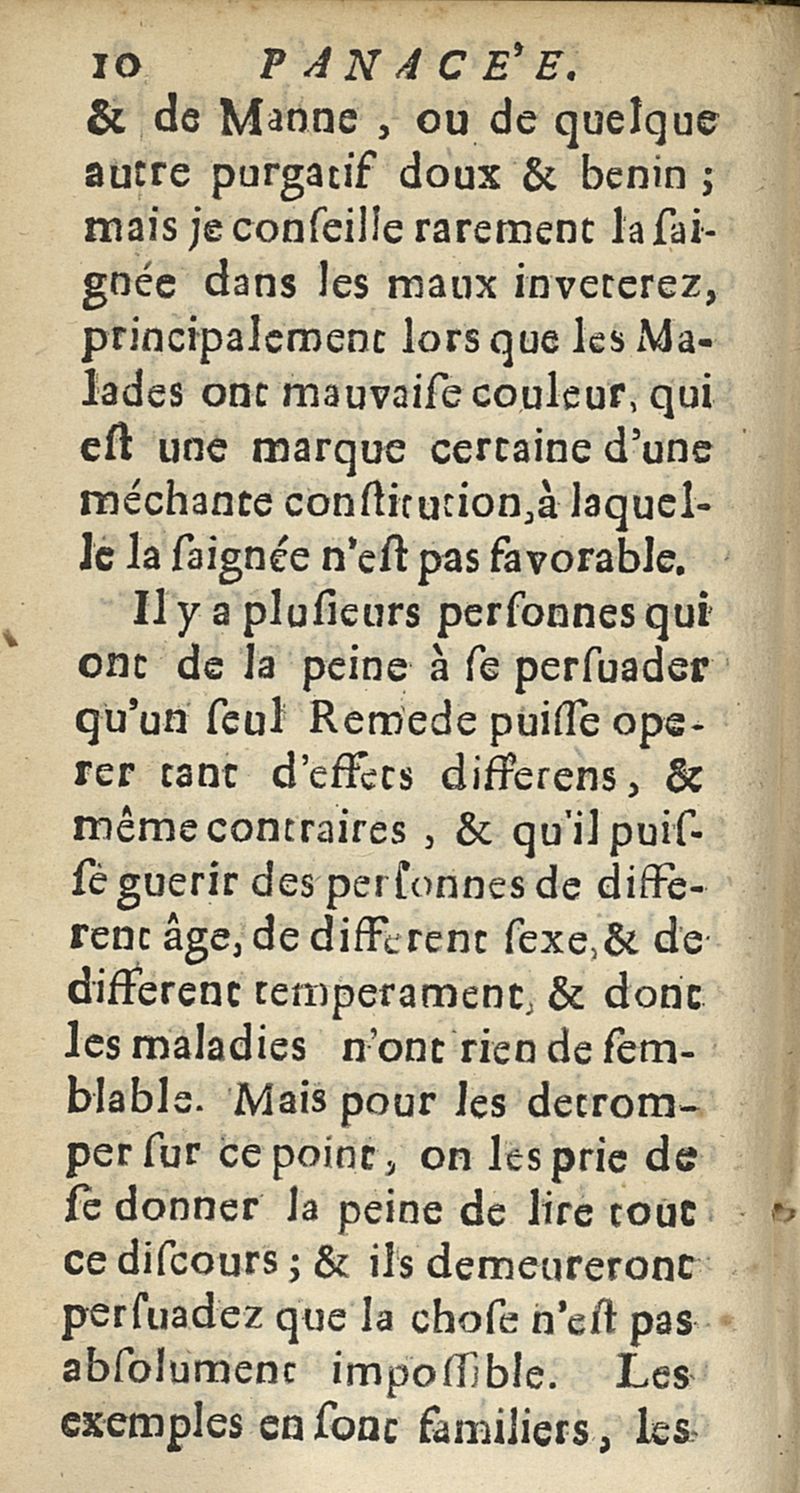 Panacée ou discours sur les effets singuliers d'un remede experimenté & commode pour la guerison de la pluspart des longues maladies ; même de celles qui semblent incurables...