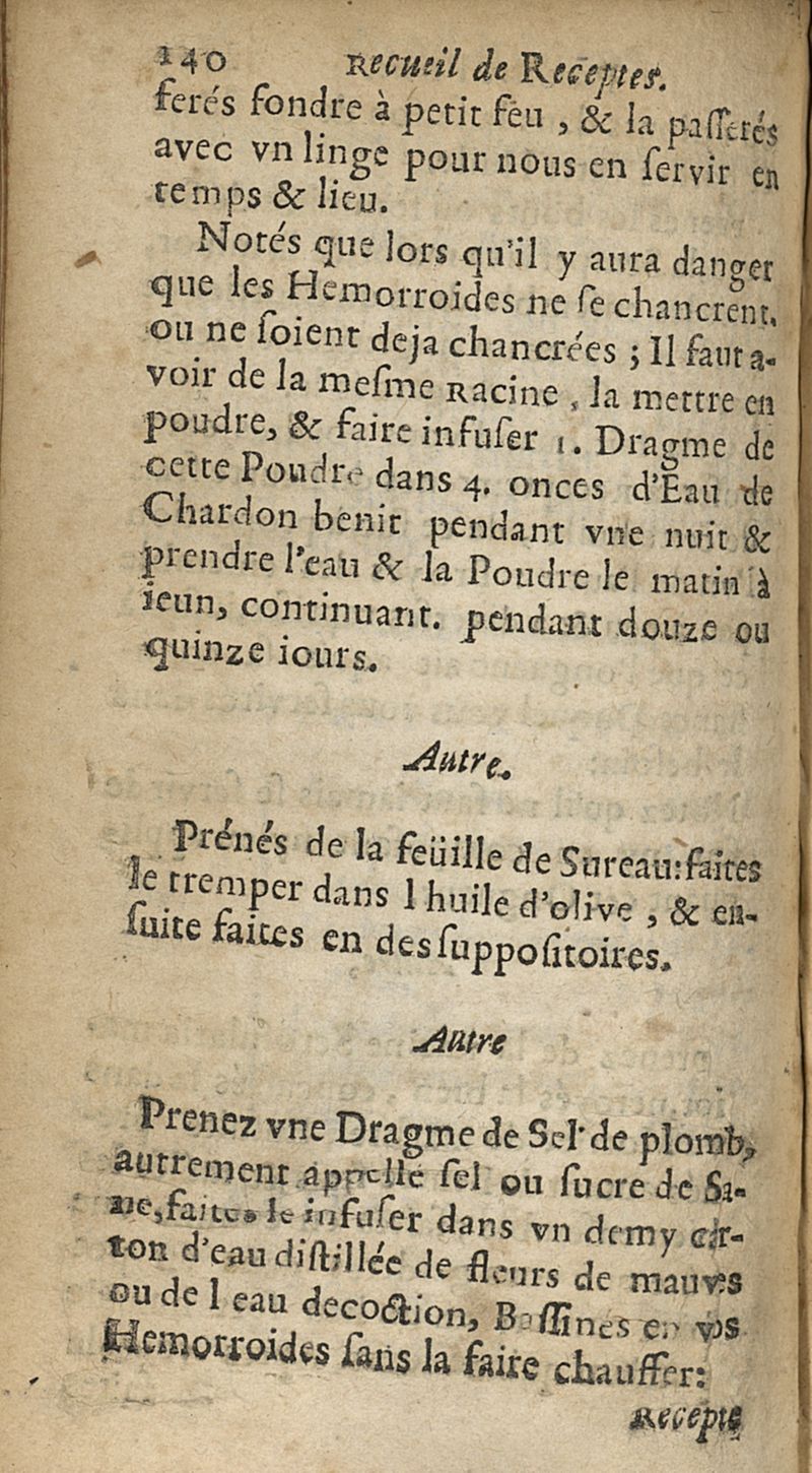 Recueil de receptes, où estt expliquée la maniere de guerir...
