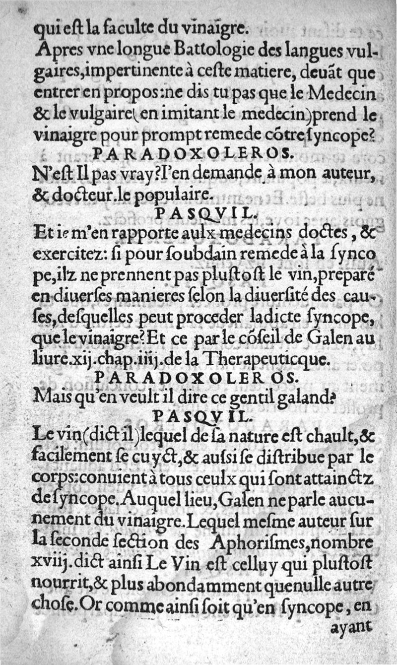 Pasquil antiparadoxe. Dialogue contre le paradoxe de la Faculté du vinaigre