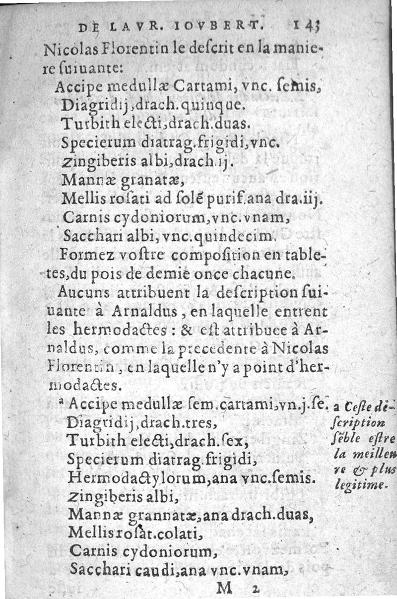 La pharmacopee de M. Laur. Joubert, Professeur en Medecine, Docteur Royal, et Chancelier en l’Université de Montpellier. Ensemble les Annotations de Jean Paul Zangmaisterus, Conseiller de ladicte Université, mises en marge,