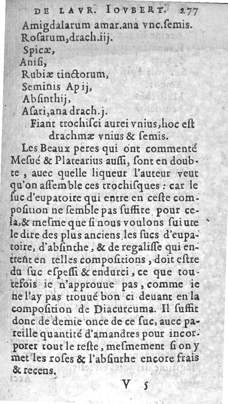 La pharmacopee de M. Laur. Joubert, Professeur en Medecine, Docteur Royal, et Chancelier en l’Université de Montpellier. Ensemble les Annotations de Jean Paul Zangmaisterus, Conseiller de ladicte Université, mises en marge,