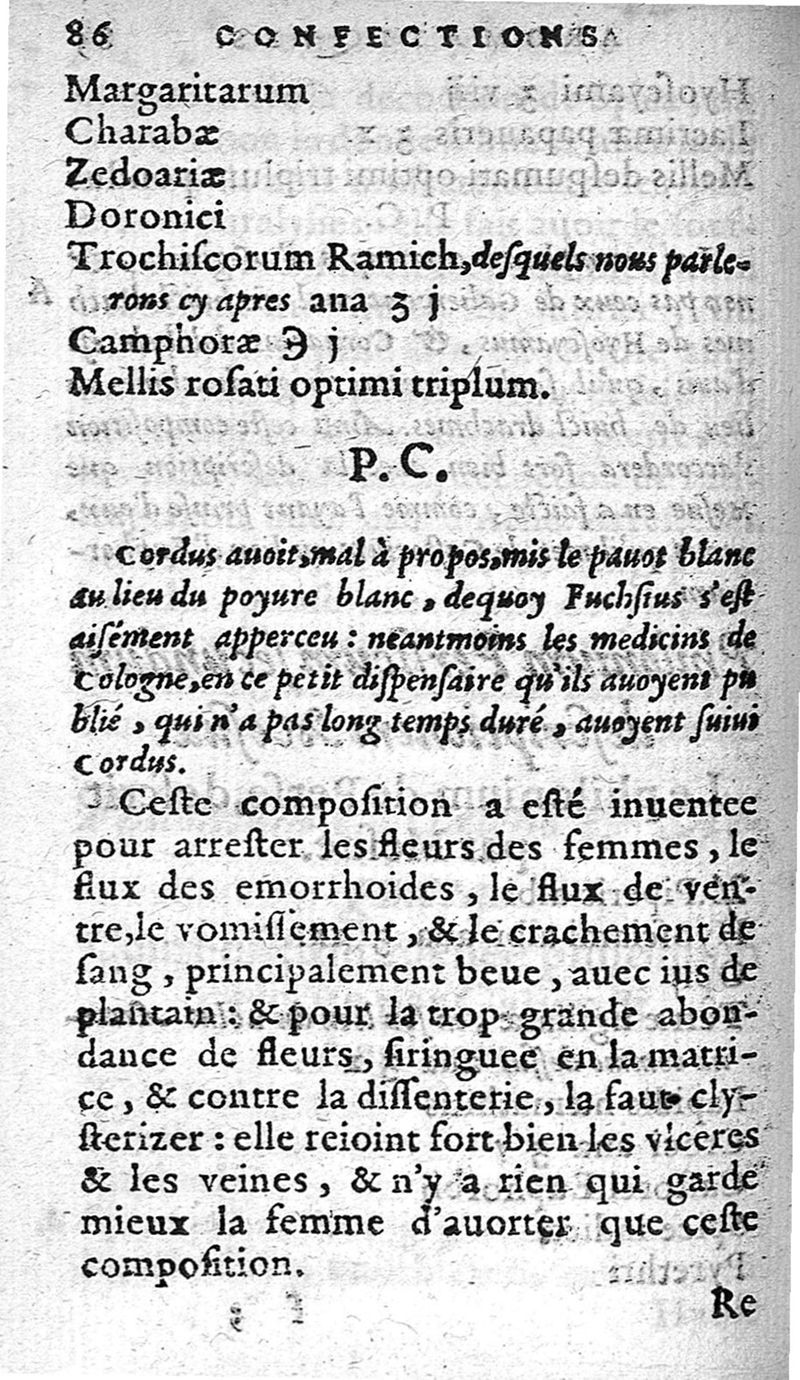 Le guidon des Apotiquaires. C’est à dire, la vraye forme et maniere de composer les medicamens. Premierement traittee par Valerius Cordus. Traduite de Latin en François, et repurgee d’une infinité de fautes. La page suivante enseigne ce qui est traité en ce livre,