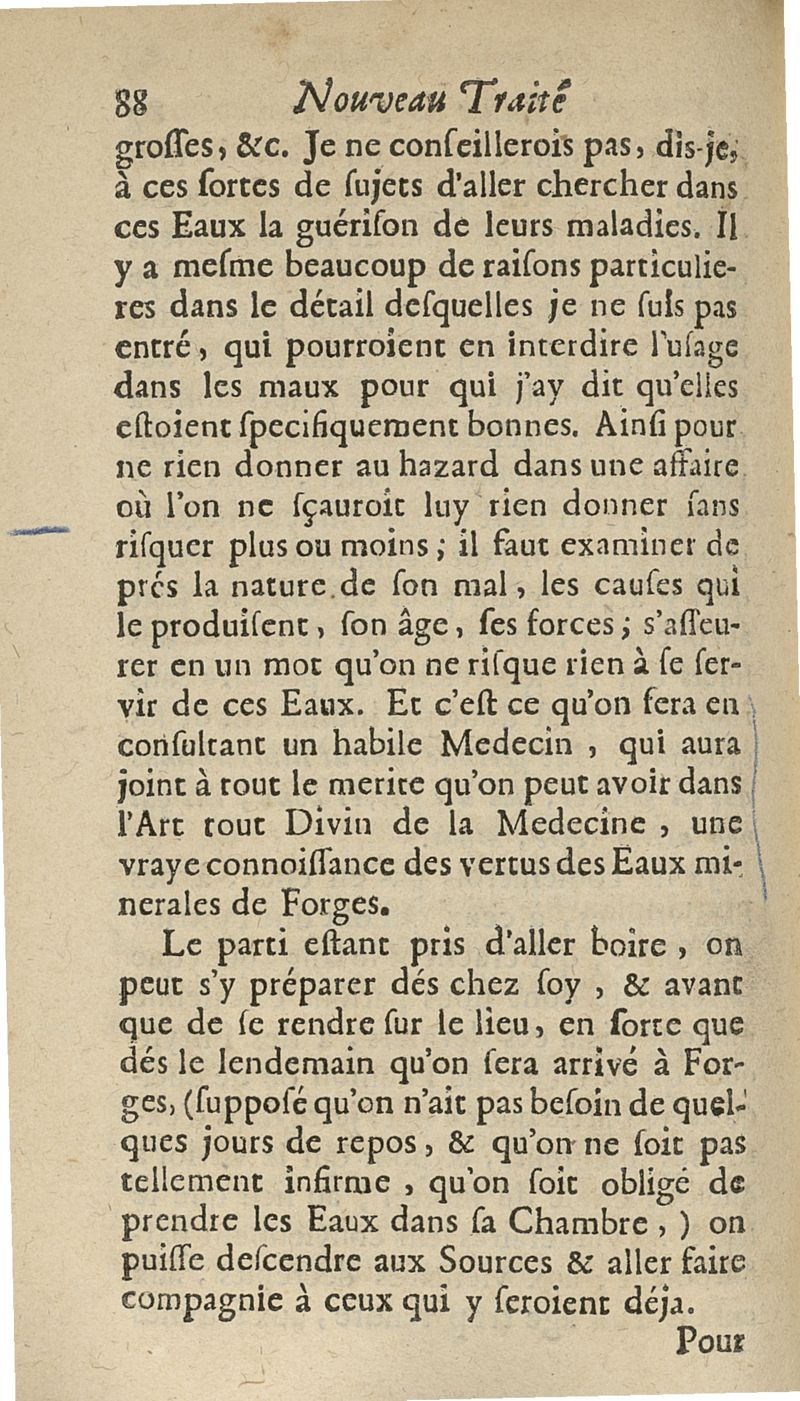 Nouveau traité des eaux minerales de Forges, où l'on fait voir dans les nouveaux principes de physique & de medecine, quelle est la nature de ces eaux...suivie d'une lettre de Me Barthelemy Linand...à M** le 15 octobre 1696...