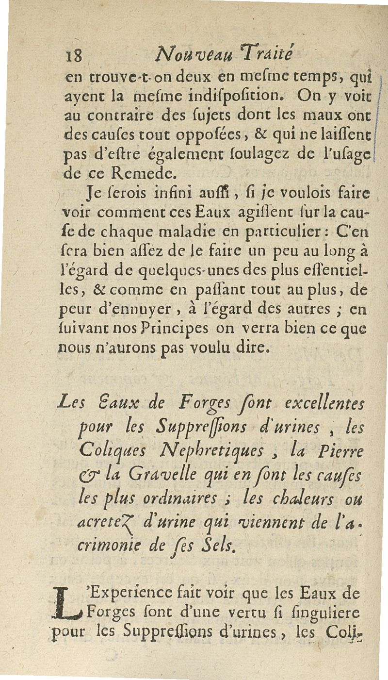 Nouveau traité des eaux minerales de Forges, où l'on fait voir dans les nouveaux principes de physique & de medecine, quelle est la nature de ces eaux...suivie d'une lettre de Me Barthelemy Linand...à M** le 15 octobre 1696...
