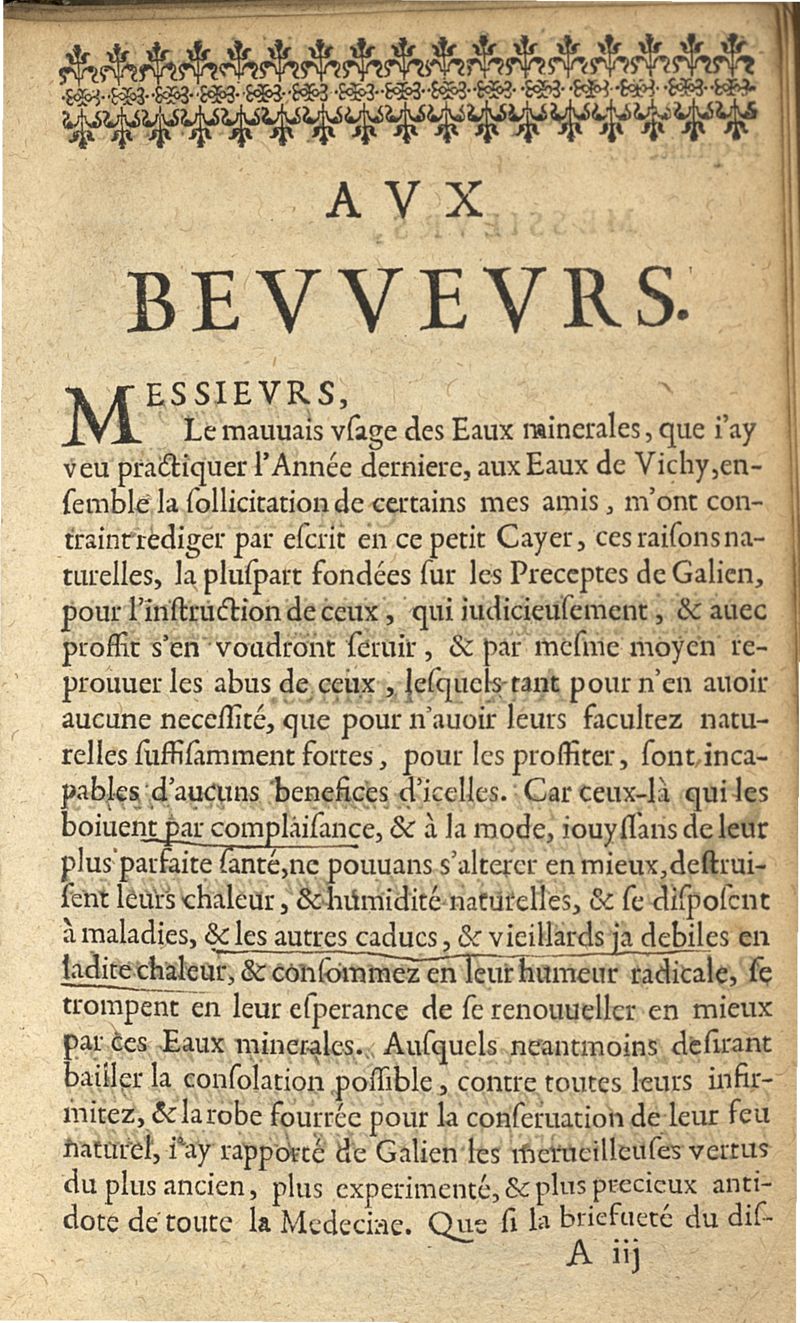 Physiologie des eaux minerales de Vichy enn Bourbonnois. Relve, corrigée des fautes de sa premiere impression, & augmentée de nouveau.