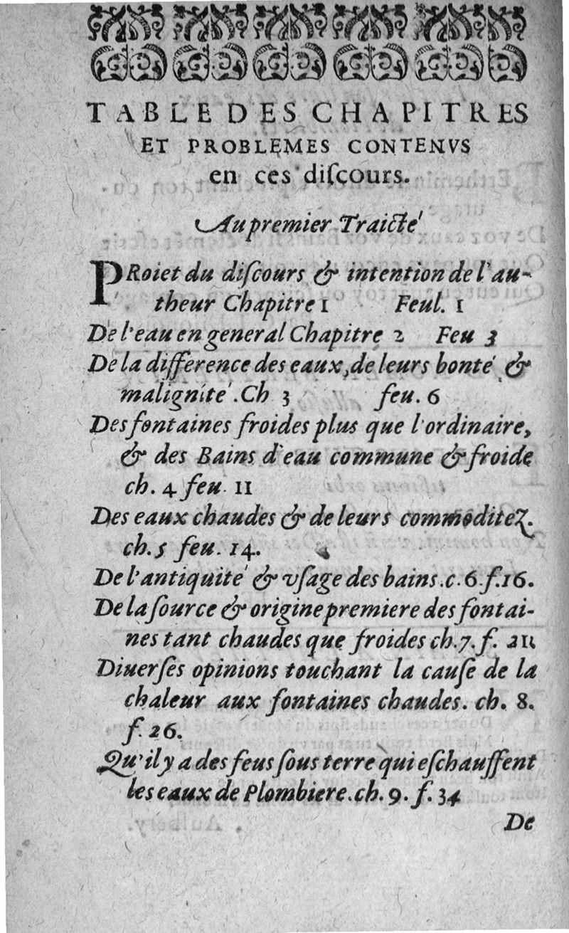 Discours des eaux chaudes et bains de Plombieres divisez en deux traictez...