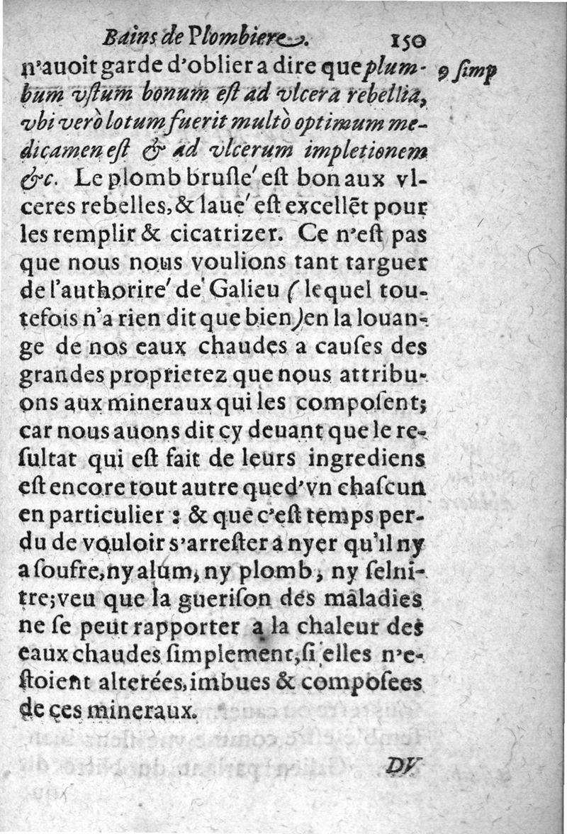 Discours des eaux chaudes et bains de Plombieres divisez en deux traictez...
