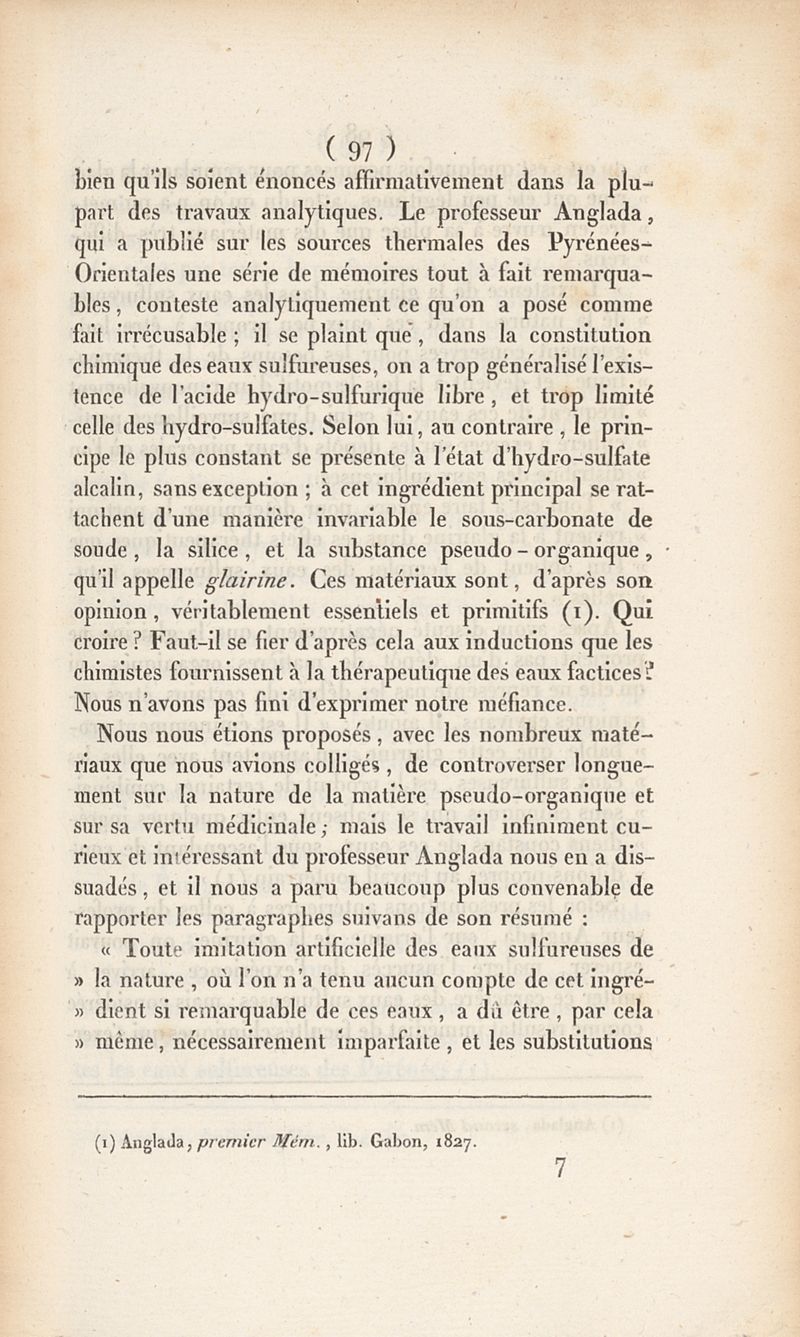 Recherches sur l'action thérapeutique des eaux minérales avec une carte thermale des Pyrénées