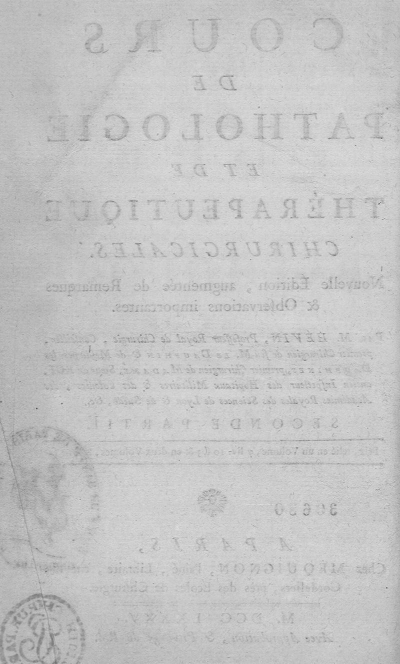 Cours de pathologie et de thérapeutique chirurgicales. Seconde partie
