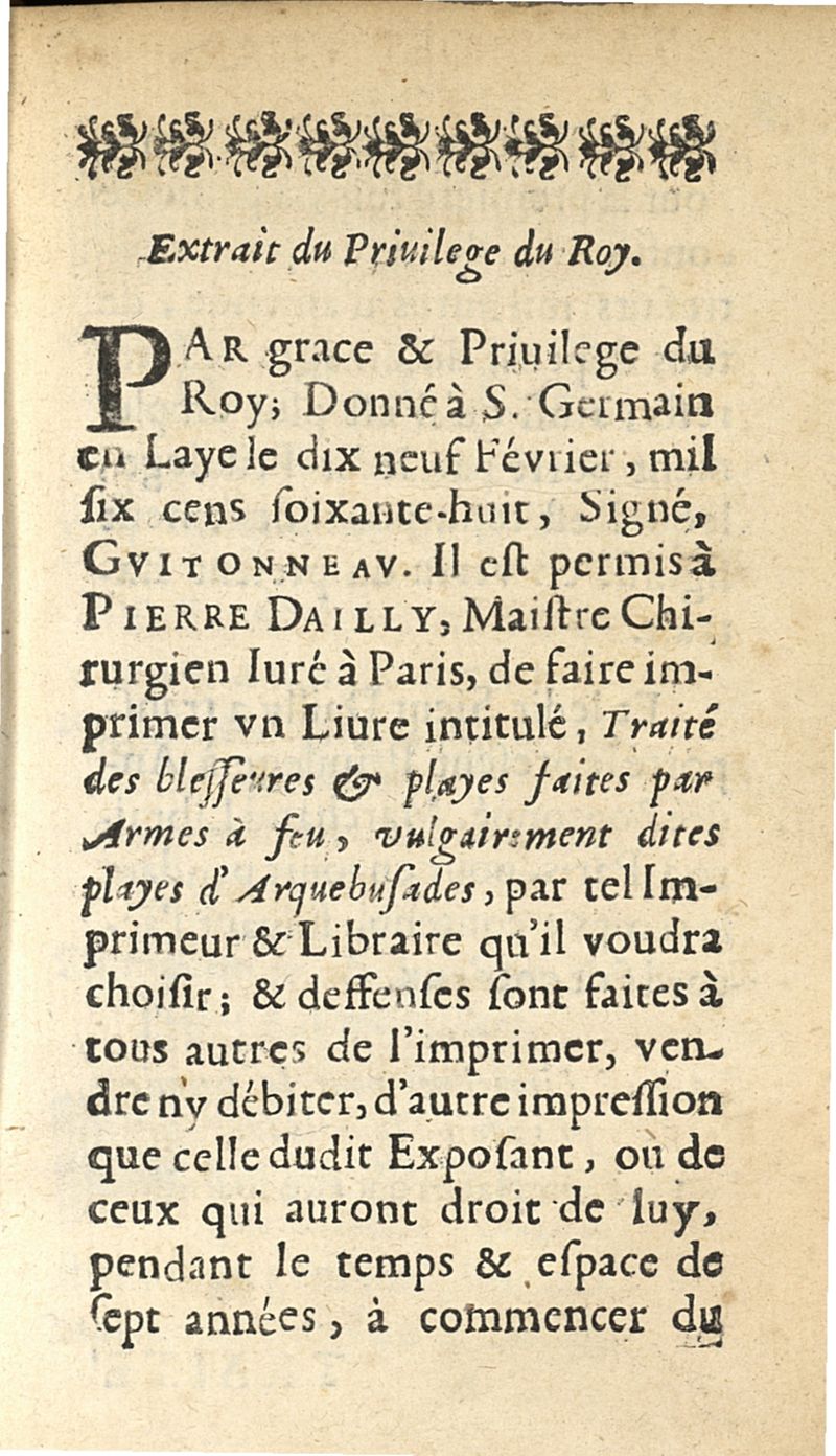 Traité des blessures et des plaies faites par armes à feu...mis en forme par Pierre d'Ailly