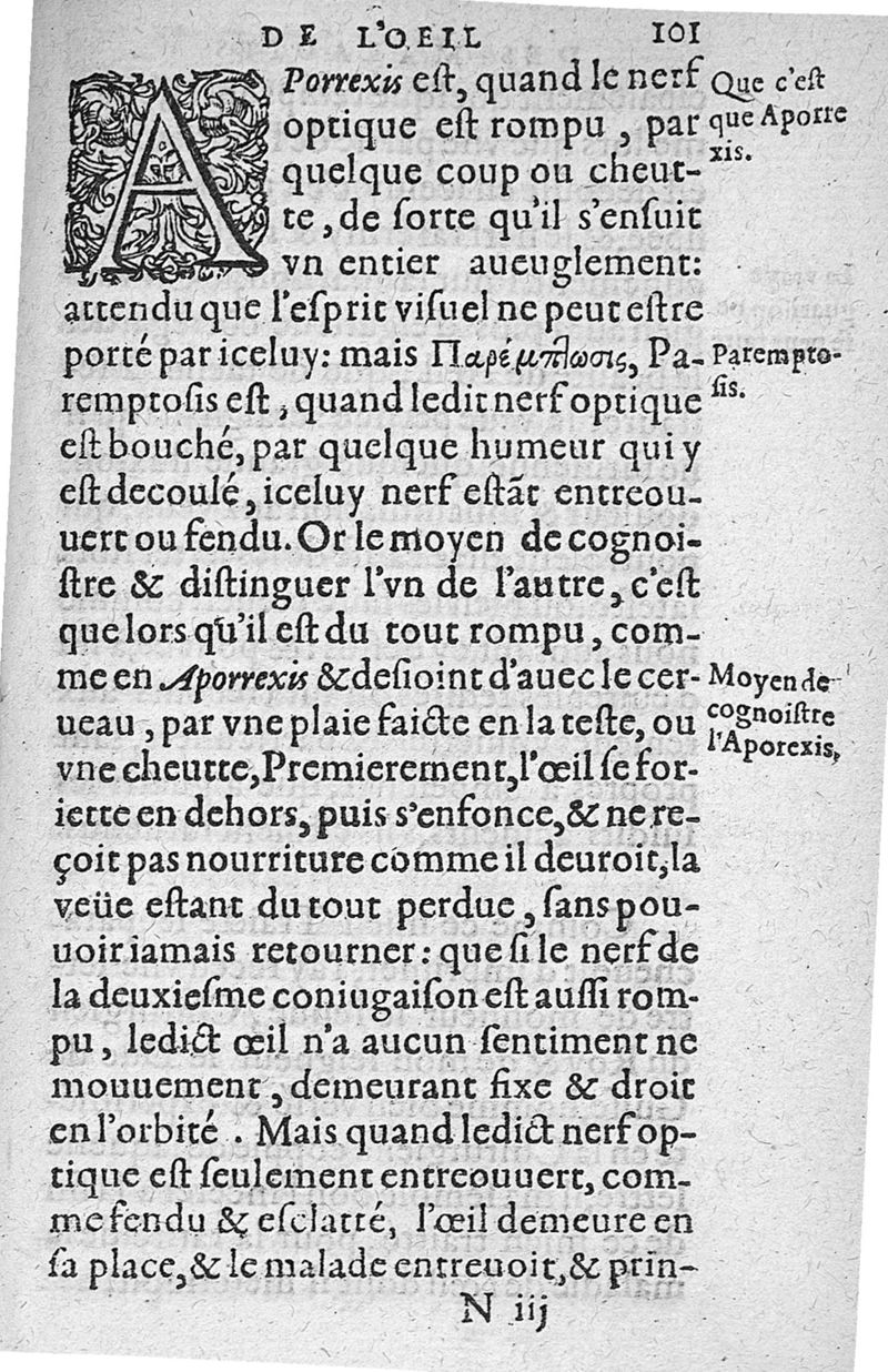Traité des maladies de l'oeil qui sont en nombre de cent treize, ausquelles il est suiect. Par Jacques Guillemeau, natif d’Orleans, chirurgien ordinaire du Roy, et juré à Paris ; A Monsieur Paré, Conseiller du Roy, son premier Chirurgien