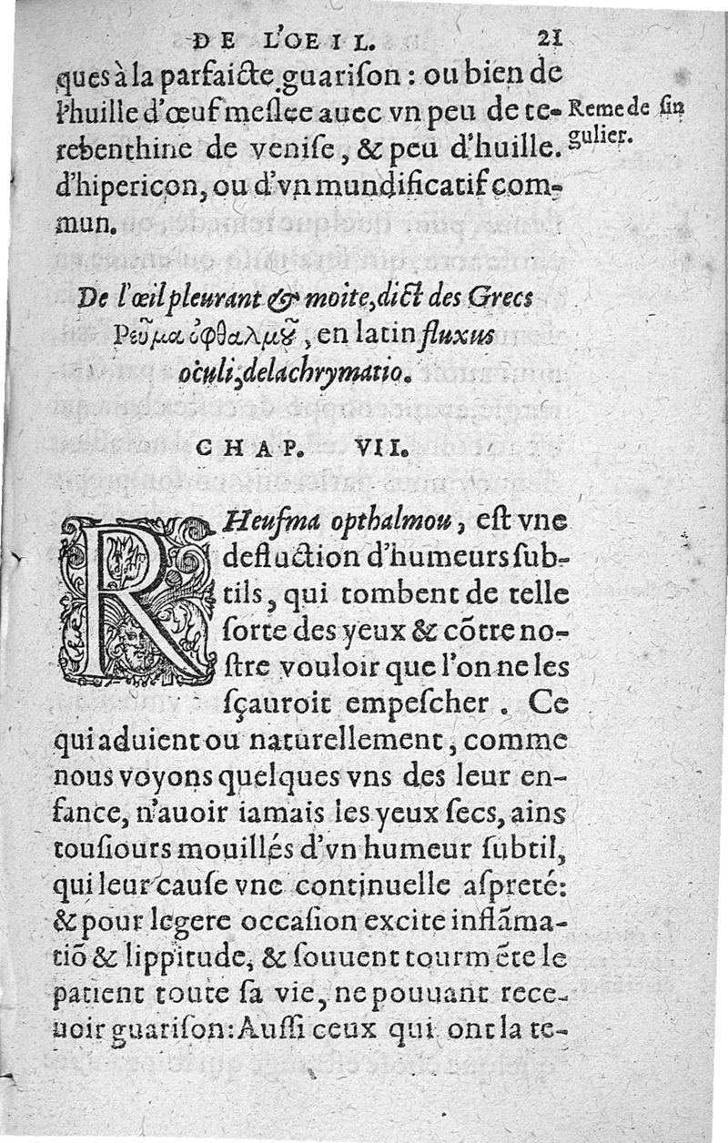 Traité des maladies de l'oeil qui sont en nombre de cent treize, ausquelles il est suiect. Par Jacques Guillemeau, natif d’Orleans, chirurgien ordinaire du Roy, et juré à Paris ; A Monsieur Paré, Conseiller du Roy, son premier Chirurgien