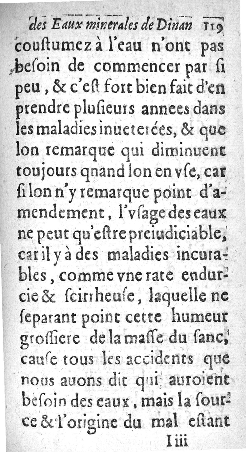 De la nature et des vertus des eaux minérales de Dinan, des maladies auquelles elles peuvent donner soulagement ou incommodité, comme il le faut gouverner en les prenant