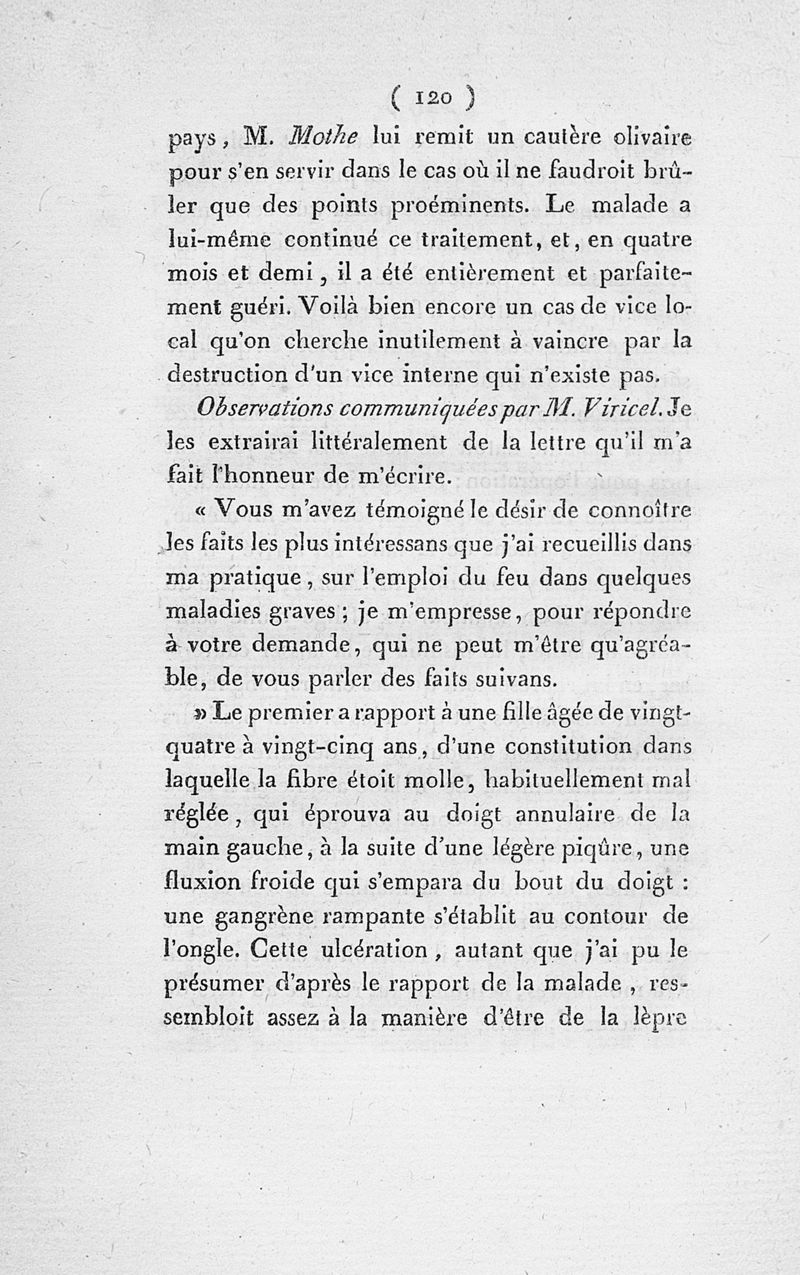 Mémoire et observations sur l'application du feu au traitement des malades ; guérison d'une maladie du foie opérée par le moxa ; suivis de vues générales sur la médecine, et de quelques préceptes en forme d'aphorismes