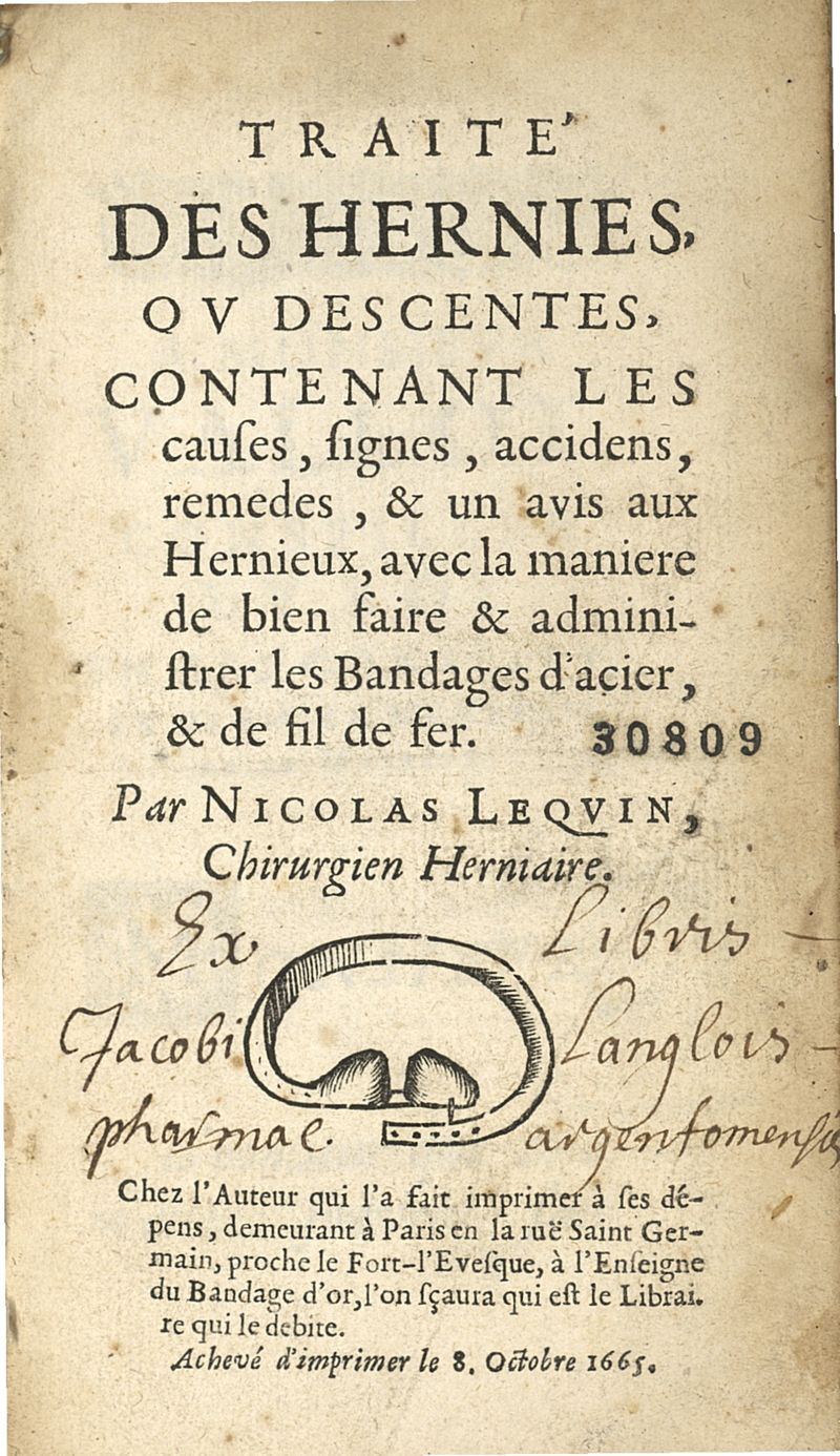 Traité des hernies, ou descentes, contenant les causes, signes, accidens, remedes, & un avis aux hernieux, avec la maniere de bien faire & administrer les bandages d'acier & de fil de fer