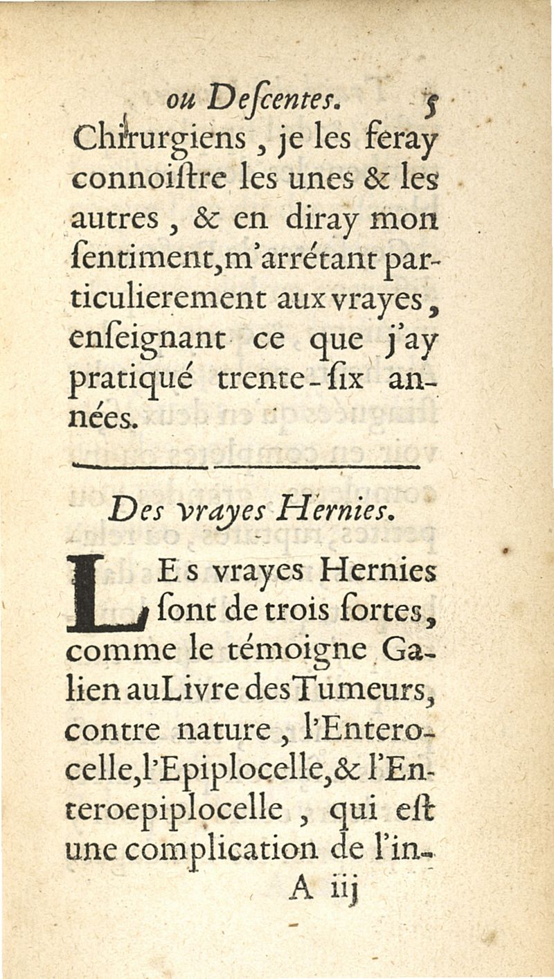 Traité des hernies, ou descentes, contenant les causes, signes, accidens, remedes, & un avis aux hernieux, avec la maniere de bien faire & administrer les bandages d'acier & de fil de fer