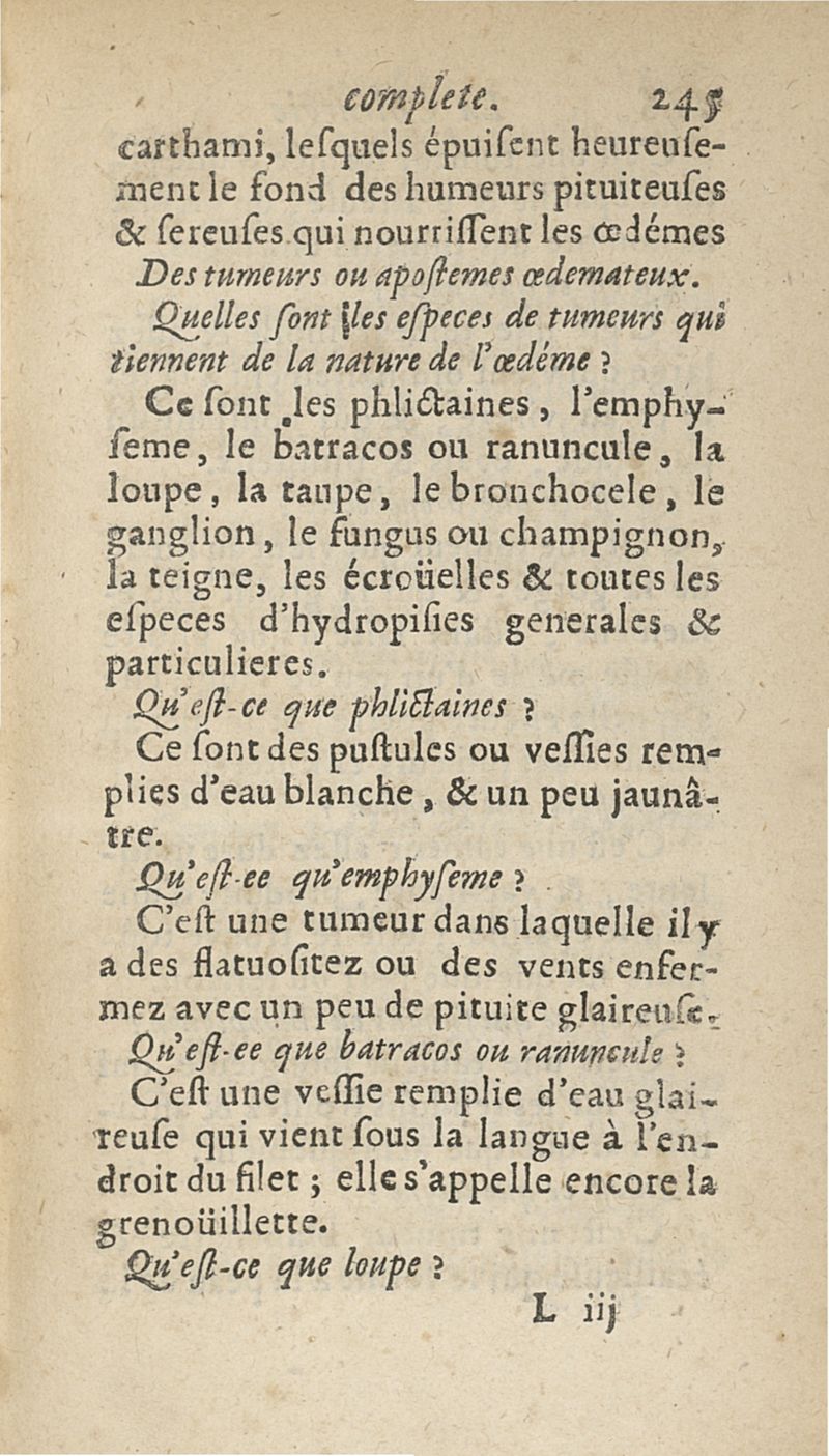 La Chirurgie complète, par demandes et par réponses, qui contient ses principes, l'Ostéologie, la Myologie, les tumeurs...avec une pharmacie qui apprend la maniere de composer les Remèdes les plus utiles...