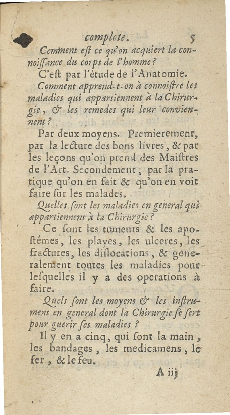 La Chirurgie complète, par demandes et par réponses, qui contient ses principes, l'Ostéologie, la Myologie, les tumeurs...avec une pharmacie qui apprend la maniere de composer les Remèdes les plus utiles...