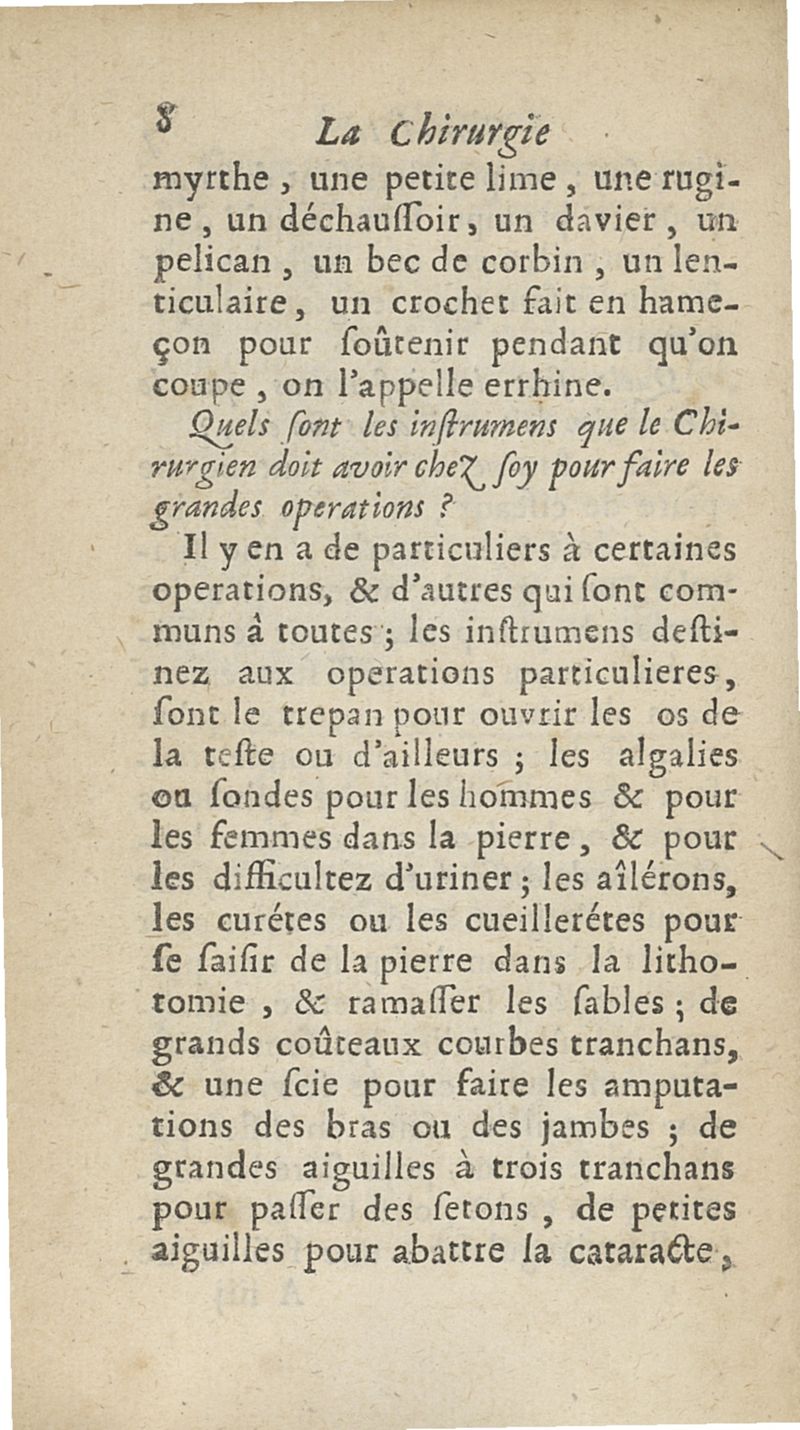 La Chirurgie complète, par demandes et par réponses, qui contient ses principes, l'Ostéologie, la Myologie, les tumeurs...avec une pharmacie qui apprend la maniere de composer les Remèdes les plus utiles...