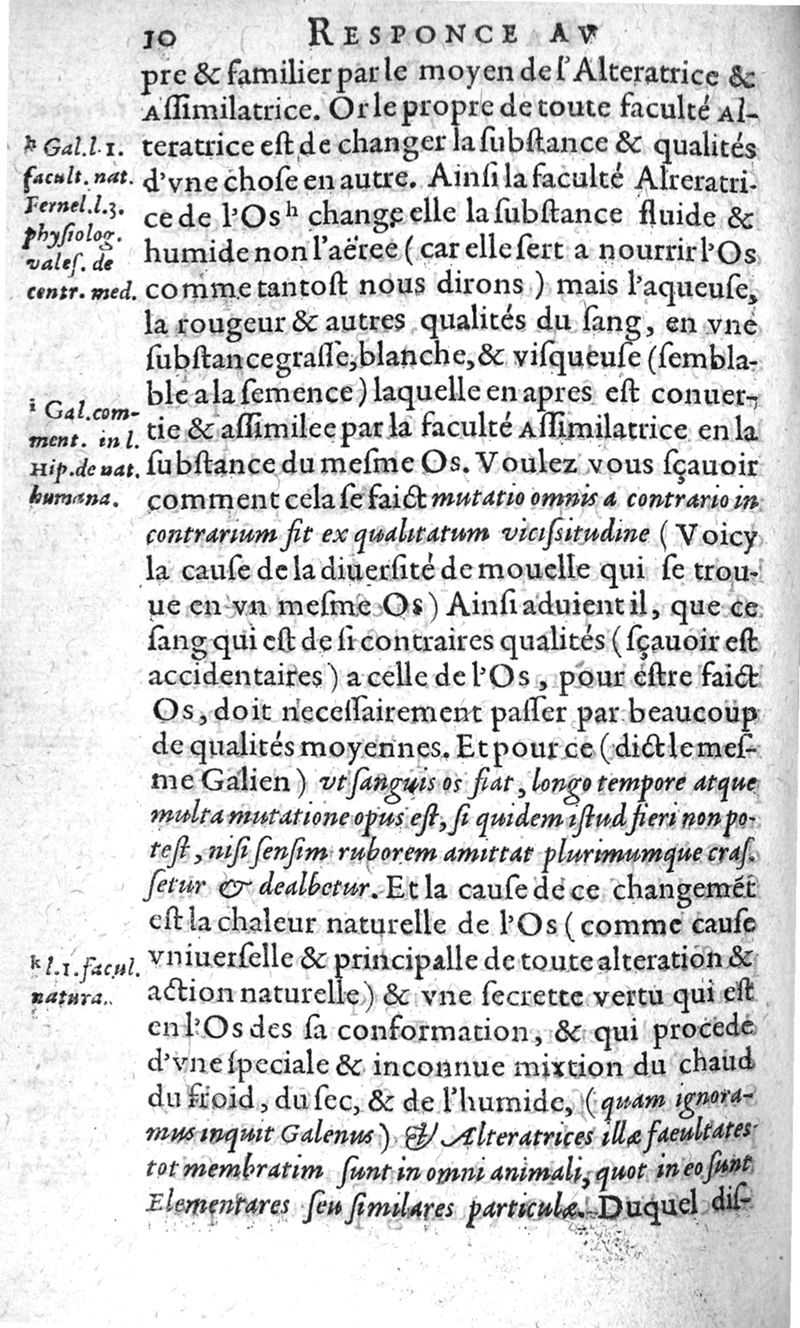 Responce au Paradoxe de maistre Jacques de Marque ou il dict que la mouelle n’est pas la nourriture des os,
