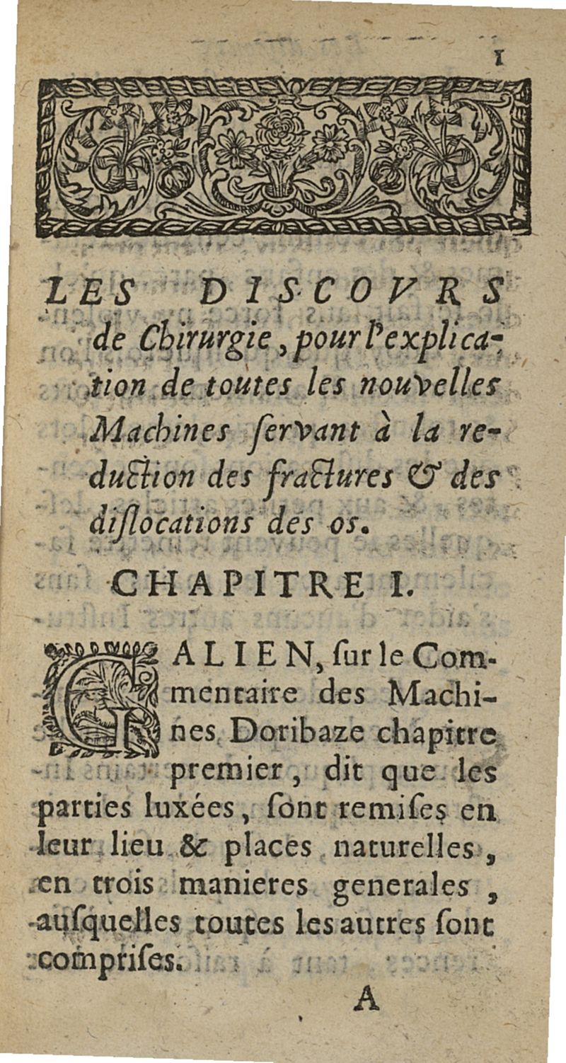 Les Discours de chirurgie. Pour l'explication des nouvelles machines pour les os, & pour la verole, ou maladie venerienne, lors qu'elle y fait des nodus & des exostoses, & des anchyloses aux jointures ; avec l'art de la guerir methodiquement par la seule application du mercure...