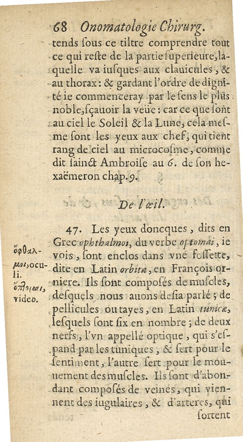 Onomatologie chirurgique ou explication des mots grecs appartenans à la chirurgie...avec un petit traicté de la correspondance des meteores...