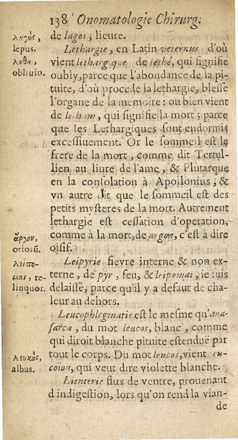 Onomatologie chirurgique ou explication des mots grecs appartenans à la chirurgie...avec un petit traicté de la correspondance des meteores...