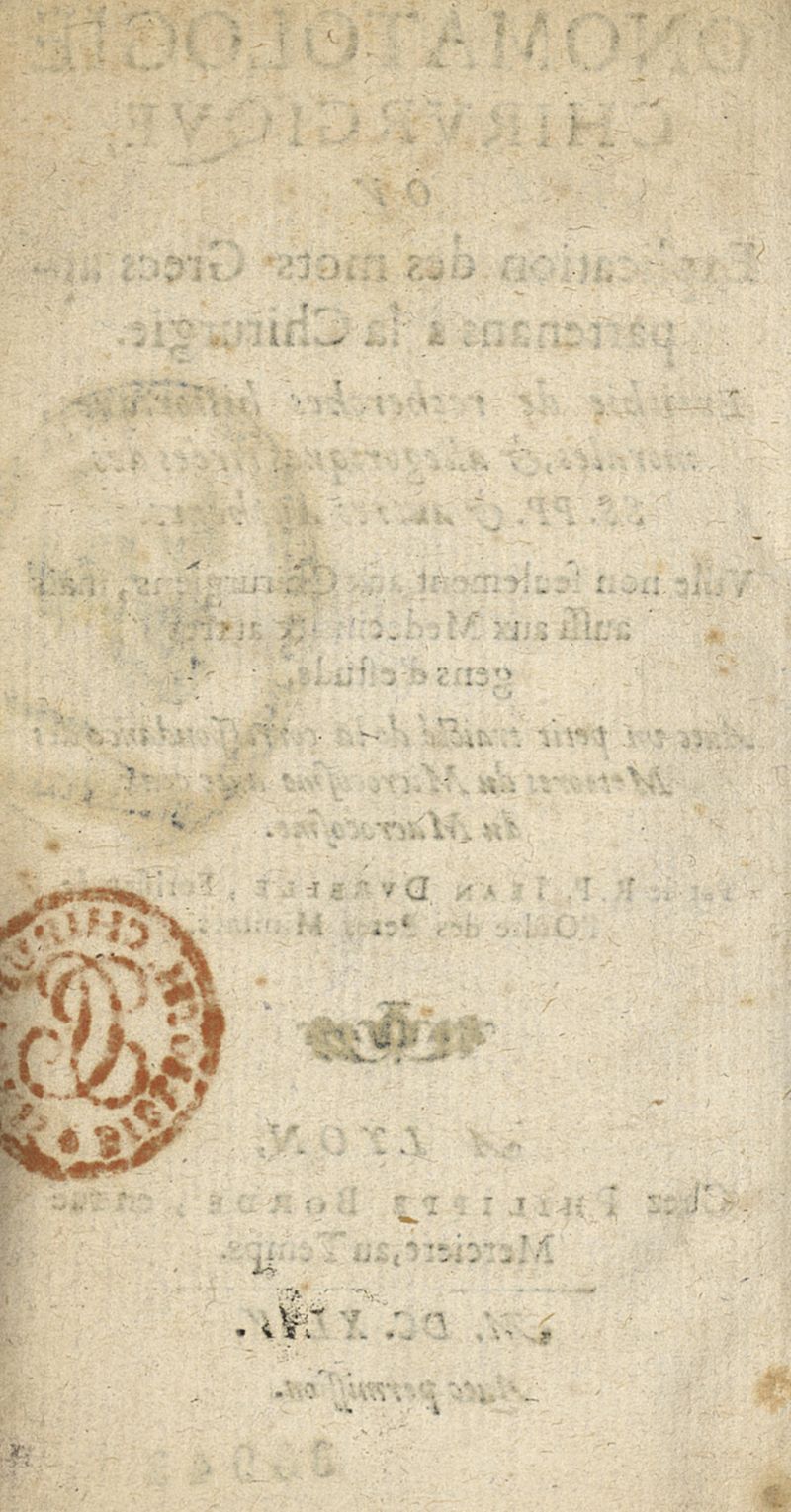 Onomatologie chirurgique ou explication des mots grecs appartenans à la chirurgie...avec un petit traicté de la correspondance des meteores...