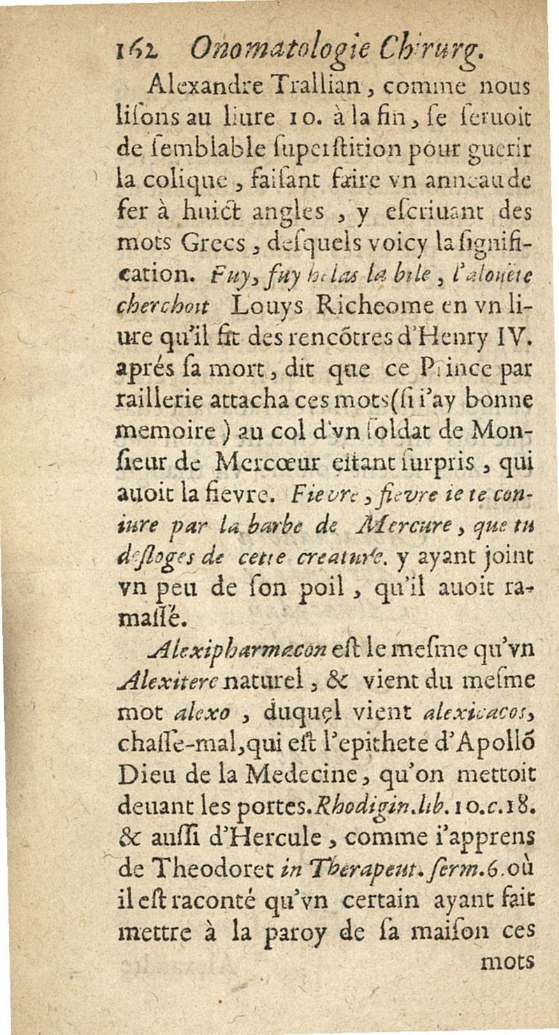 Onomatologie chirurgique ou explication des mots grecs appartenans à la chirurgie...avec un petit traicté de la correspondance des meteores...
