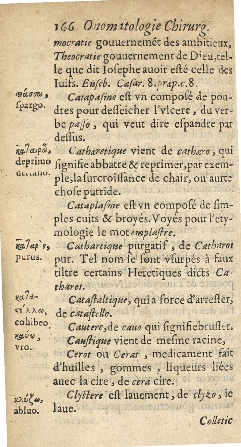 Onomatologie chirurgique ou explication des mots grecs appartenans à la chirurgie...avec un petit traicté de la correspondance des meteores...